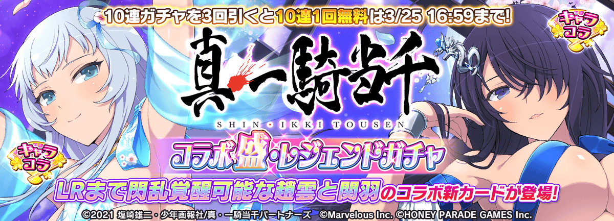 真・一騎當千(真・一騎当千)》(漫畫 / 動畫)的第三次合作活動〈以一騎當千整個IP計算則為第六次〉,同時開放合作卡片卡池。