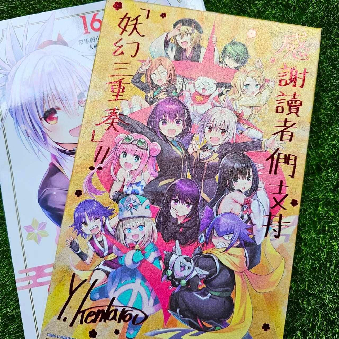 由《黑貓》、《出包王女》作畫者「矢吹健太朗」老師,於日本「集英社」旗下少年漫畫雜誌, 《週刊少年Jump》2020年28號 - 2022年20號連載,2022年4月 - 2023年9月移籍到電子平台《少年Jump+》連載。人氣戀愛喜劇作品《妖幻三重奏》,於 4 月 8 號「東立」發售台版漫畫單行本最終第16集首刷限定版,將附錄「大團圓♥」感謝特製畫板,定價180元。