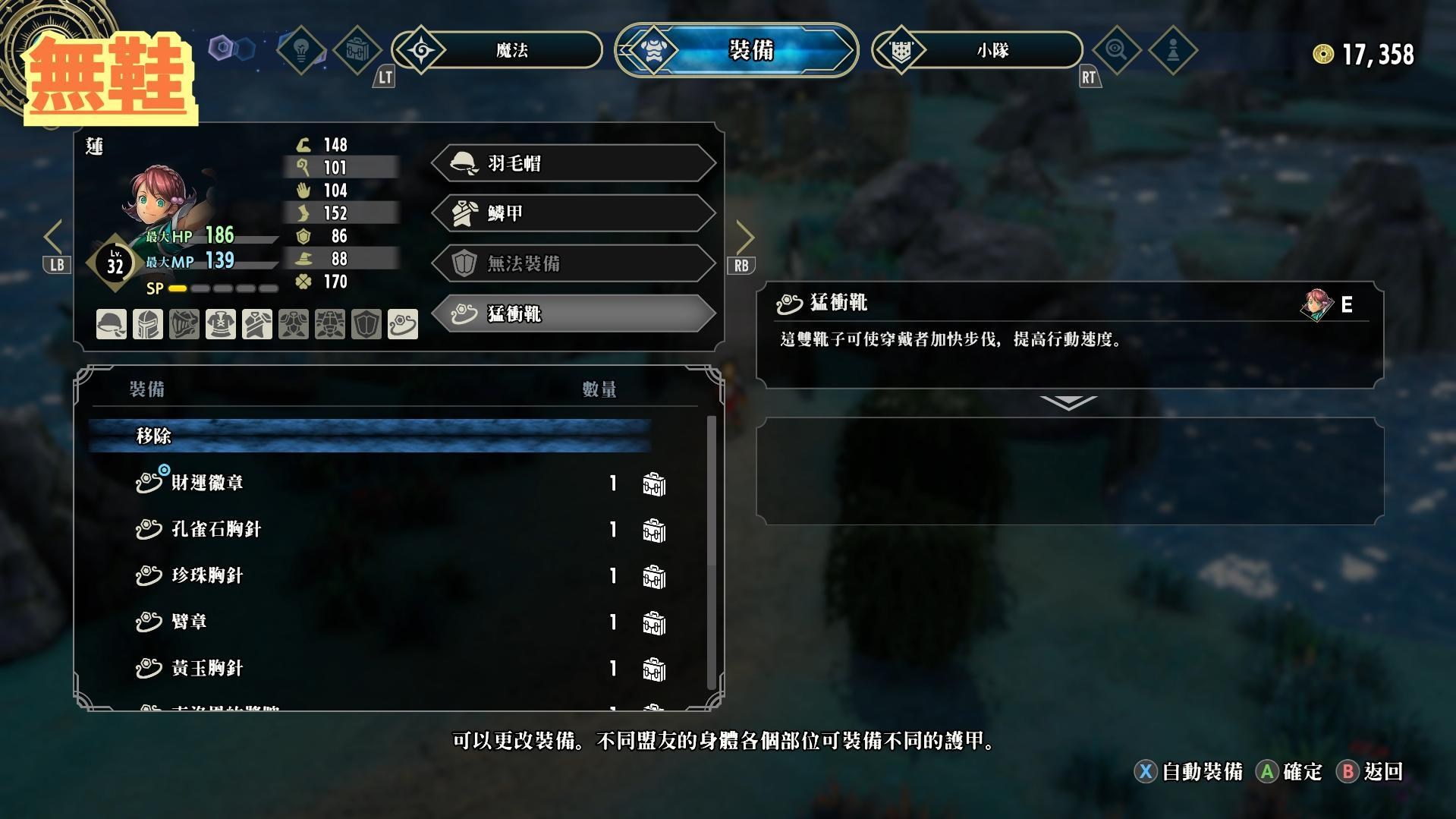 其實把這類隊伍效益道具,改成持有在背包中便有效果便好。但即使中後期會有輔助同伴是可以加跑速,但又會用掉了一個同伴位置,因為你不會想慢慢走的www。