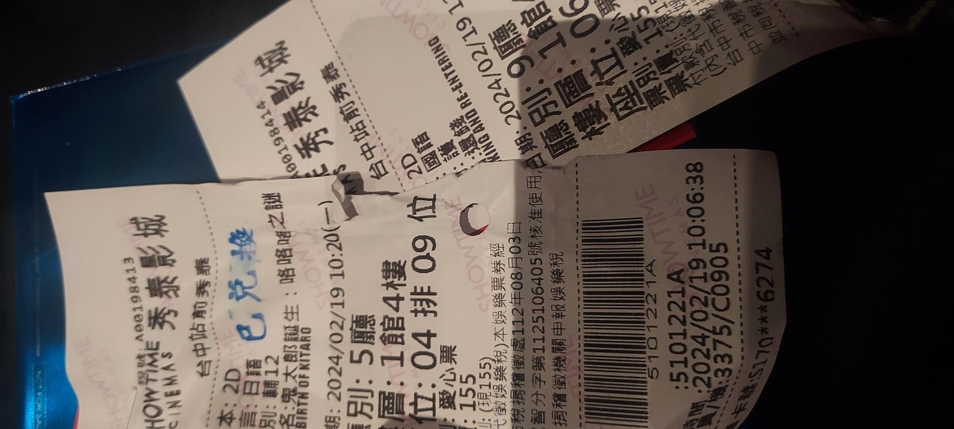 照片拍攝的時間是0130 所以應該是這天去看得沒錯 第一次日文版 後來中文版 還是我有看第三次? 中文版我記得我是用接的 中文版感覺比較有感情一點 雖然配音員年紀都蠻大的了
