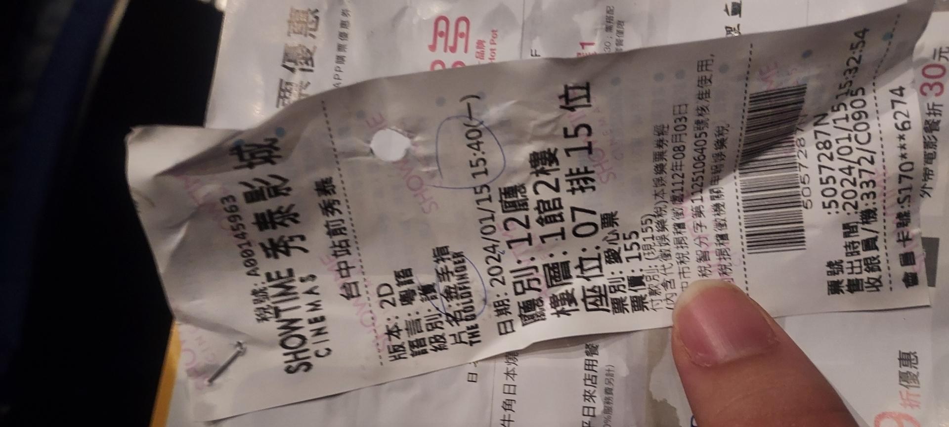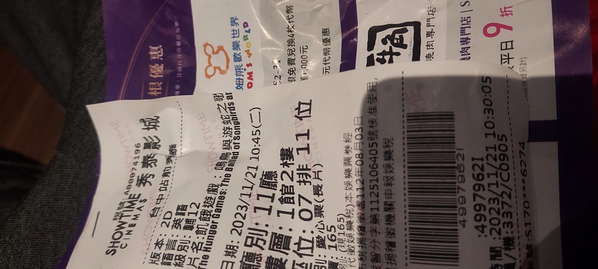 我記得我有拍電影票 但我不知道為什麼沒照片 忘記殘障手冊 還多花錢XD