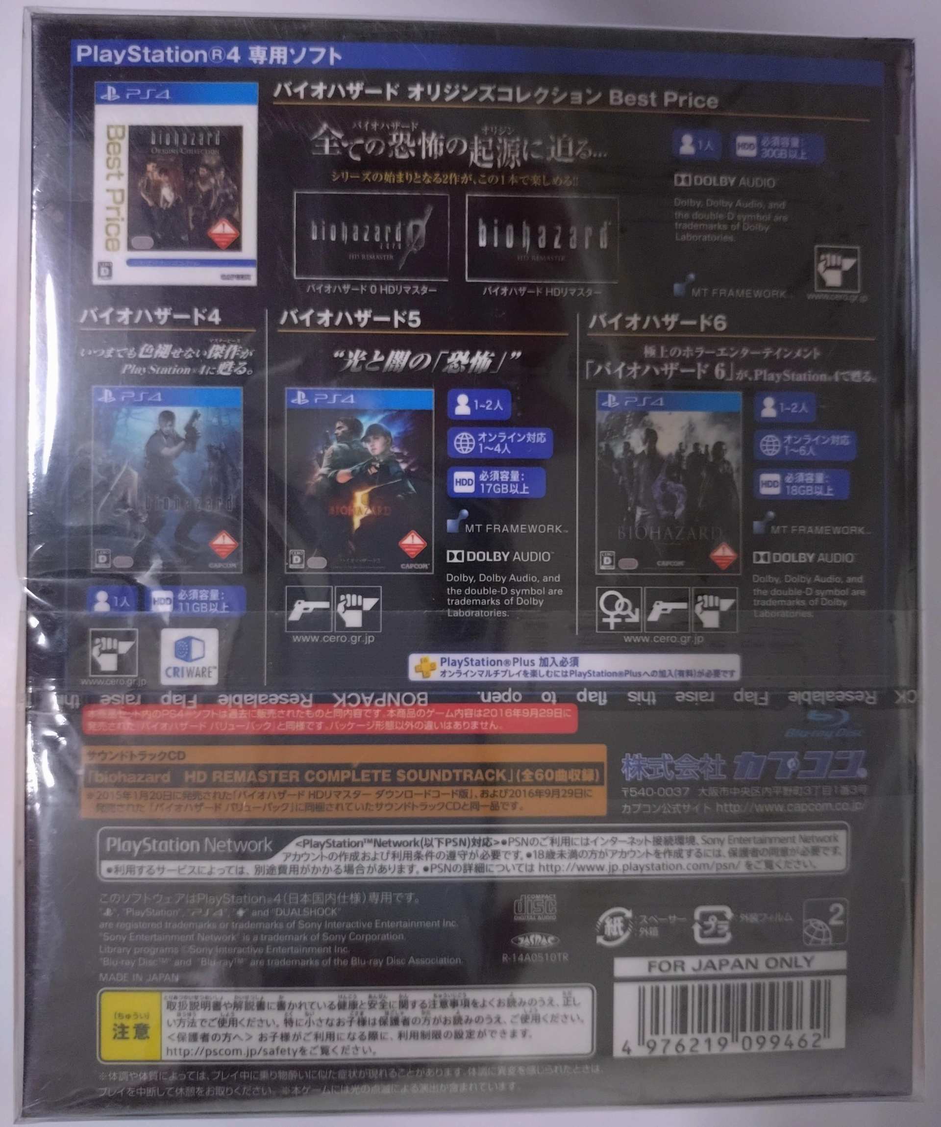 此版本內含普通版《惡靈古堡:起源》(PLJM 84043) 和《惡靈古堡HD 重製版完整原聲帶》 (CPCS-01103),裡面的《惡靈古堡4》《惡靈古堡 5》和《惡靈古堡 6》皆為下載版。