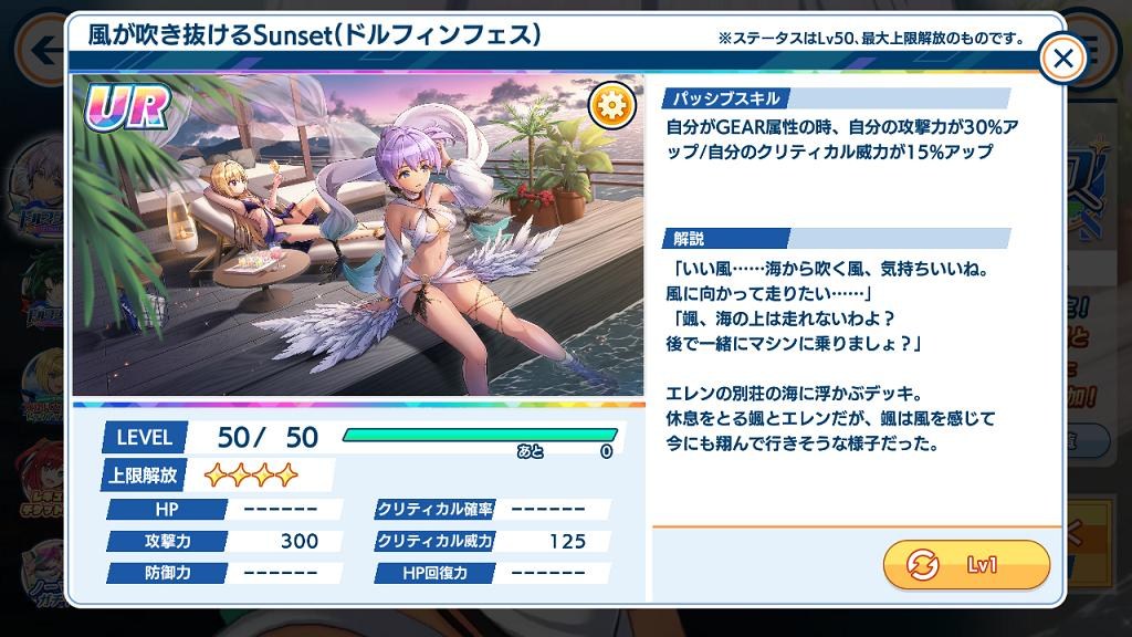 本次PU的新回憶則為 UR 有風吹拂的日落景色(海豚祭) (風が吹き抜けるSunset(ドルフィンフェス)) 。※「有風吹拂的日落景色(海豚祭)」為期間限定,對應Live 2D演出