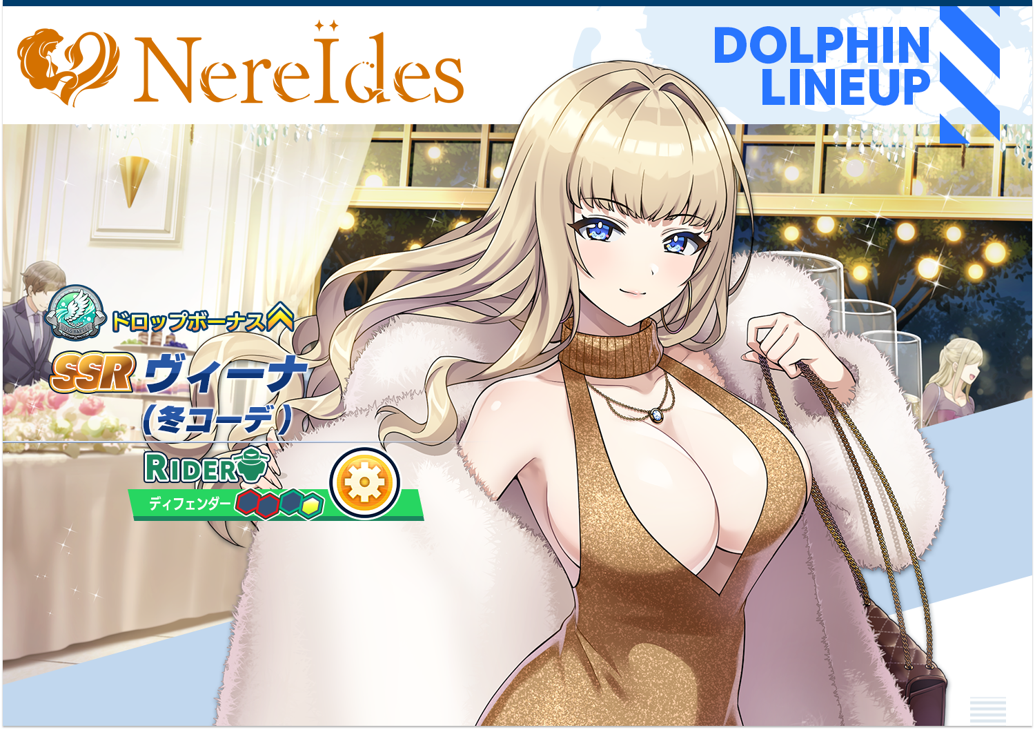 透過活動限定頭目戰取得的道具可以在活動商店兌換海豚 SSR 薇娜(冬季服裝) ヴィーナ(冬コーデ) 。