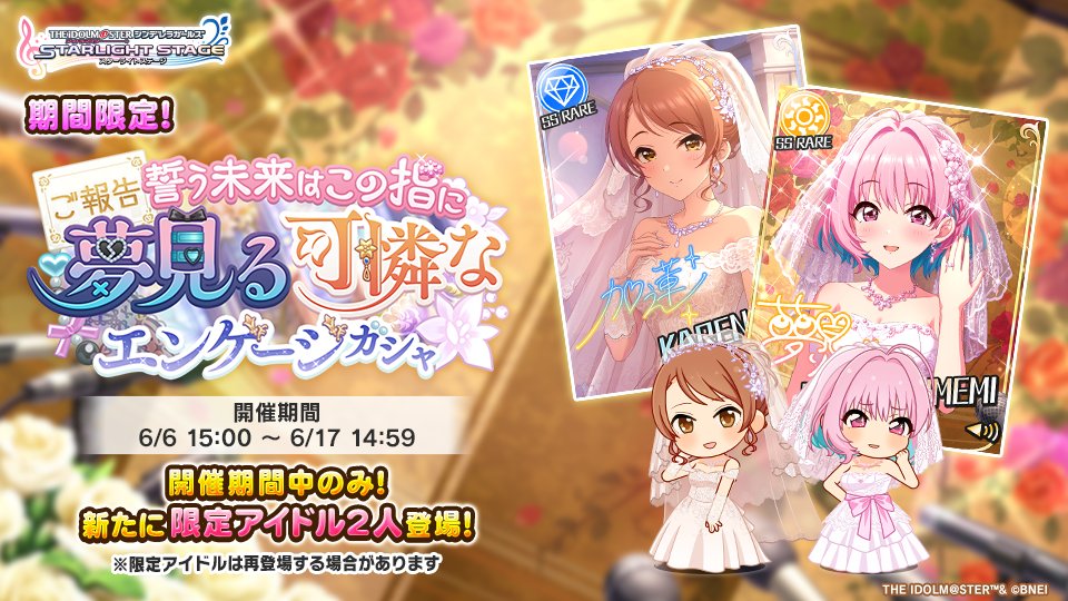 全新期間限定偶像【夢見りあむは永遠になる】夢見璃亞夢、【ワールドエンド.ブライド】北条加蓮,於期間內 6 月 6 日 15:00(JST)~ 6 月 17 日登場。