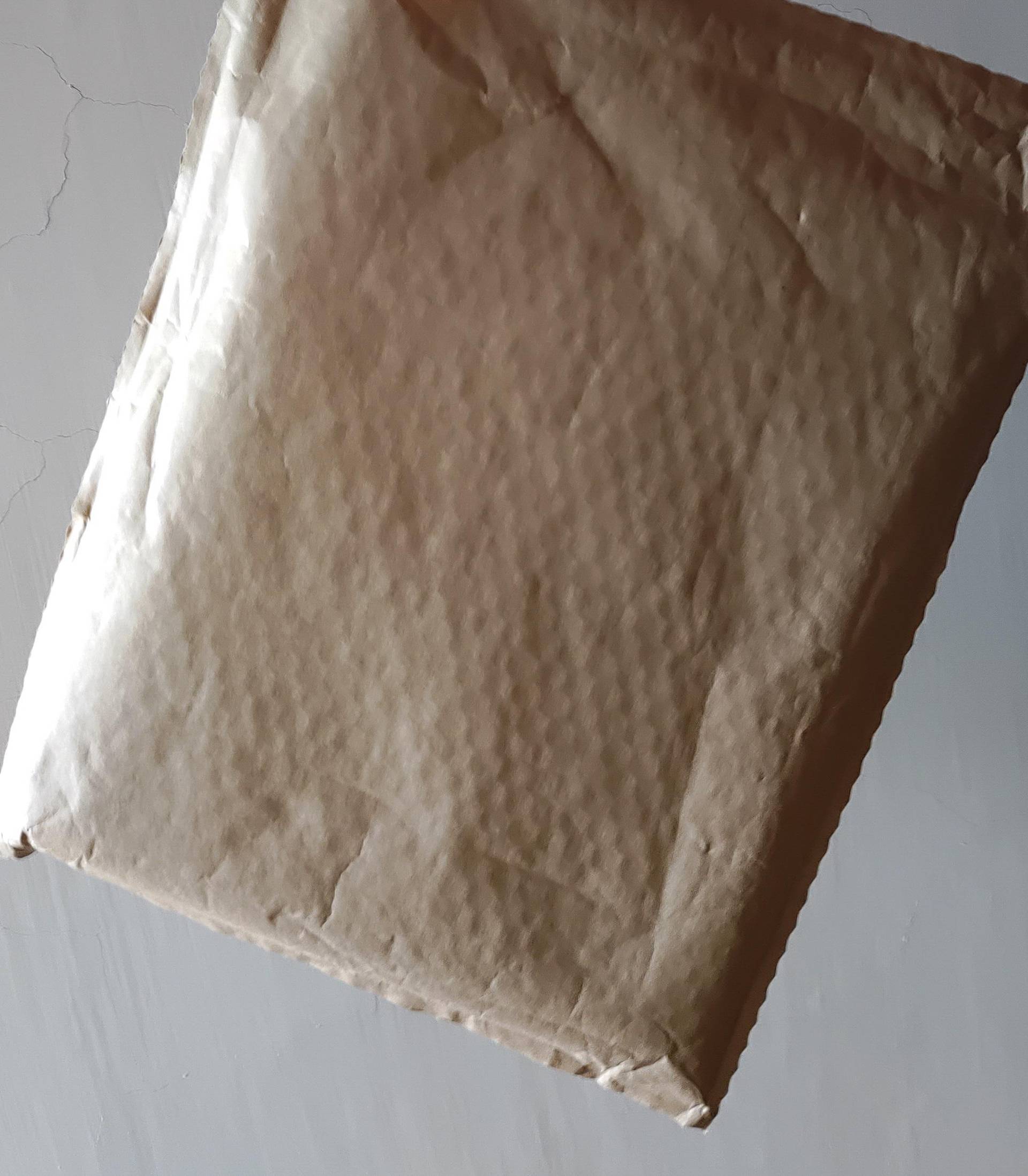 實際收到是孰悉的牛皮紙氣泡袋,完全沒拆檢所以很賭