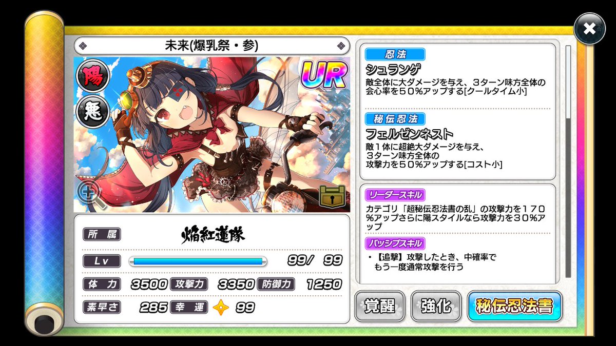 本次PU的新卡片為 UR 四季(新乳祭)以及 UR 風切(爆乳祭・貳)〈此為覺醒後的稀有度以及衣裝〉。