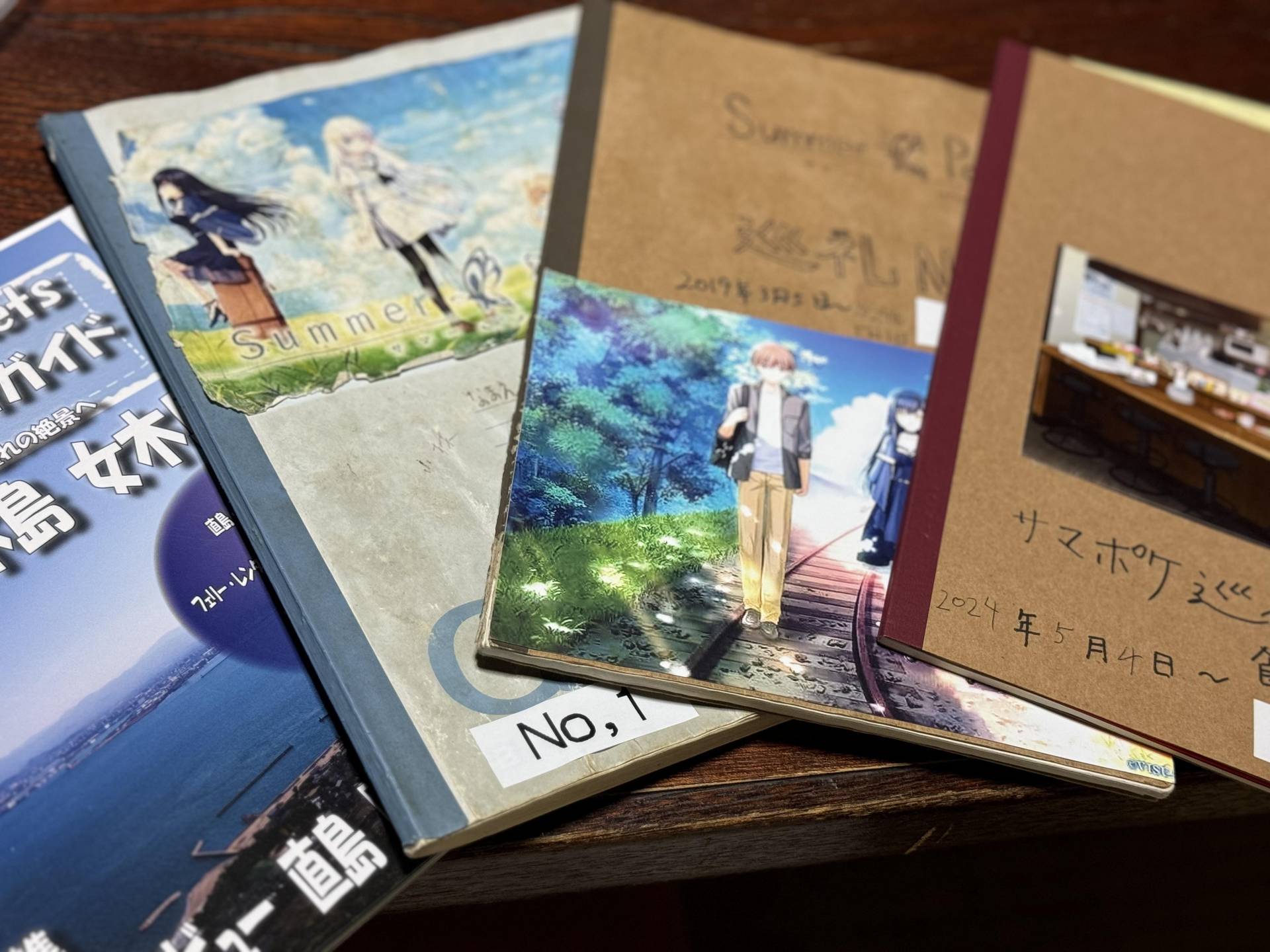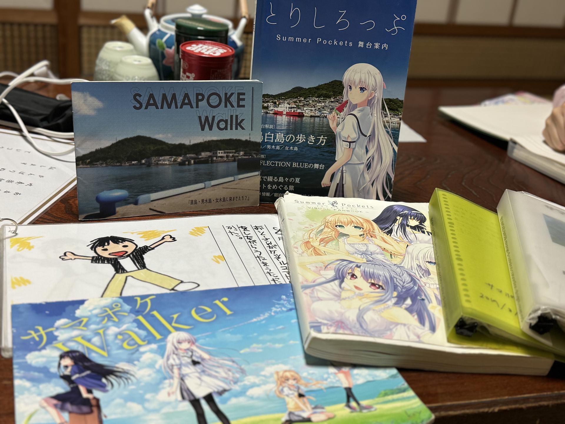 前台的桌子上還放了許多的聖巡攻略本,以及一本專門放在店裡的交流本(N代目)。