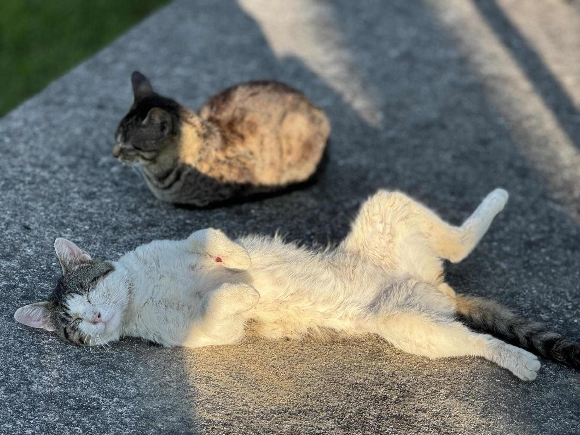 看著牠安逸地趴在地上曬太陽休息的樣子,我們的心思也轉為找尋路上的貓貓們