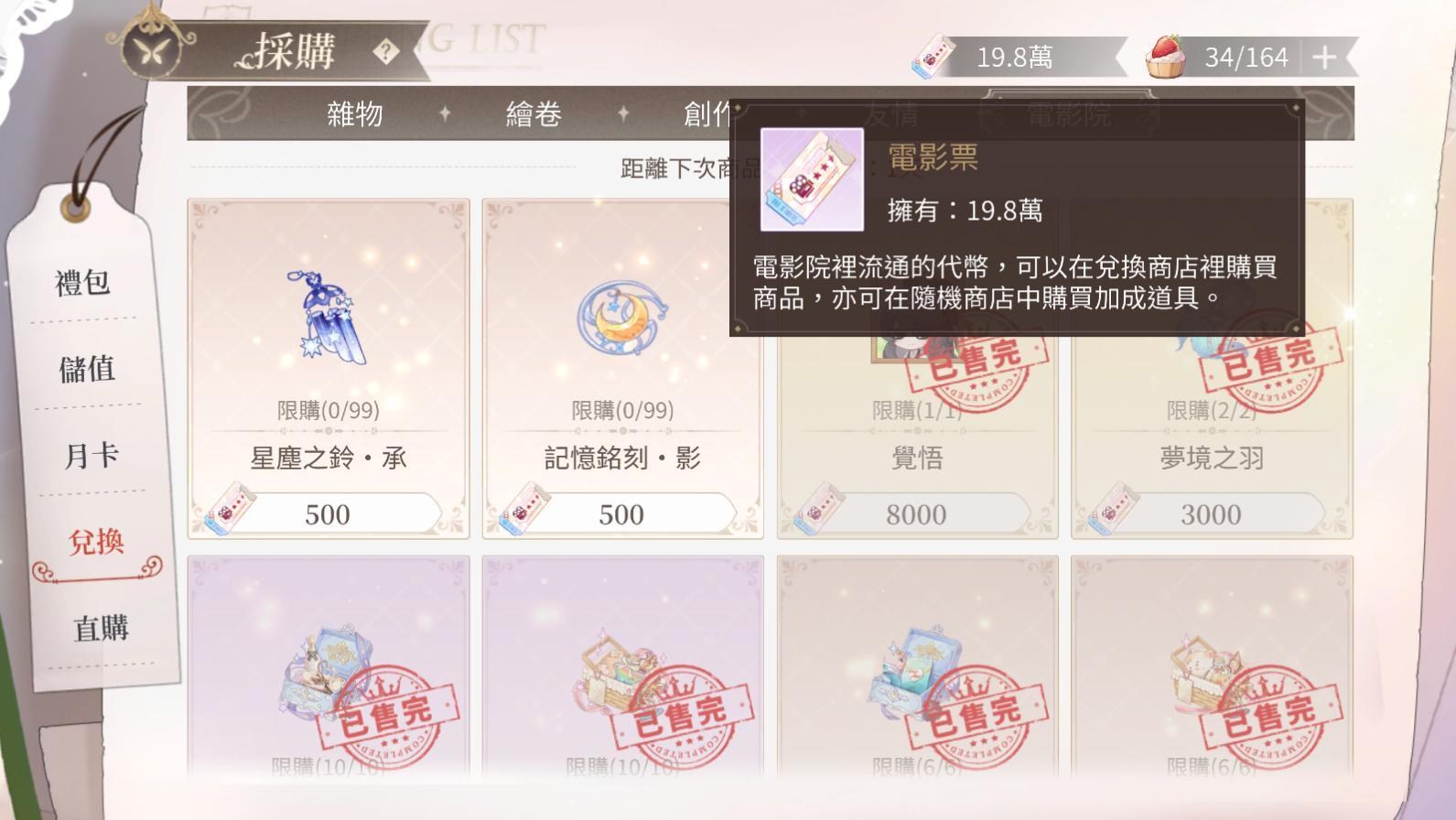 有多餘的電影票再來兌換其他道具: