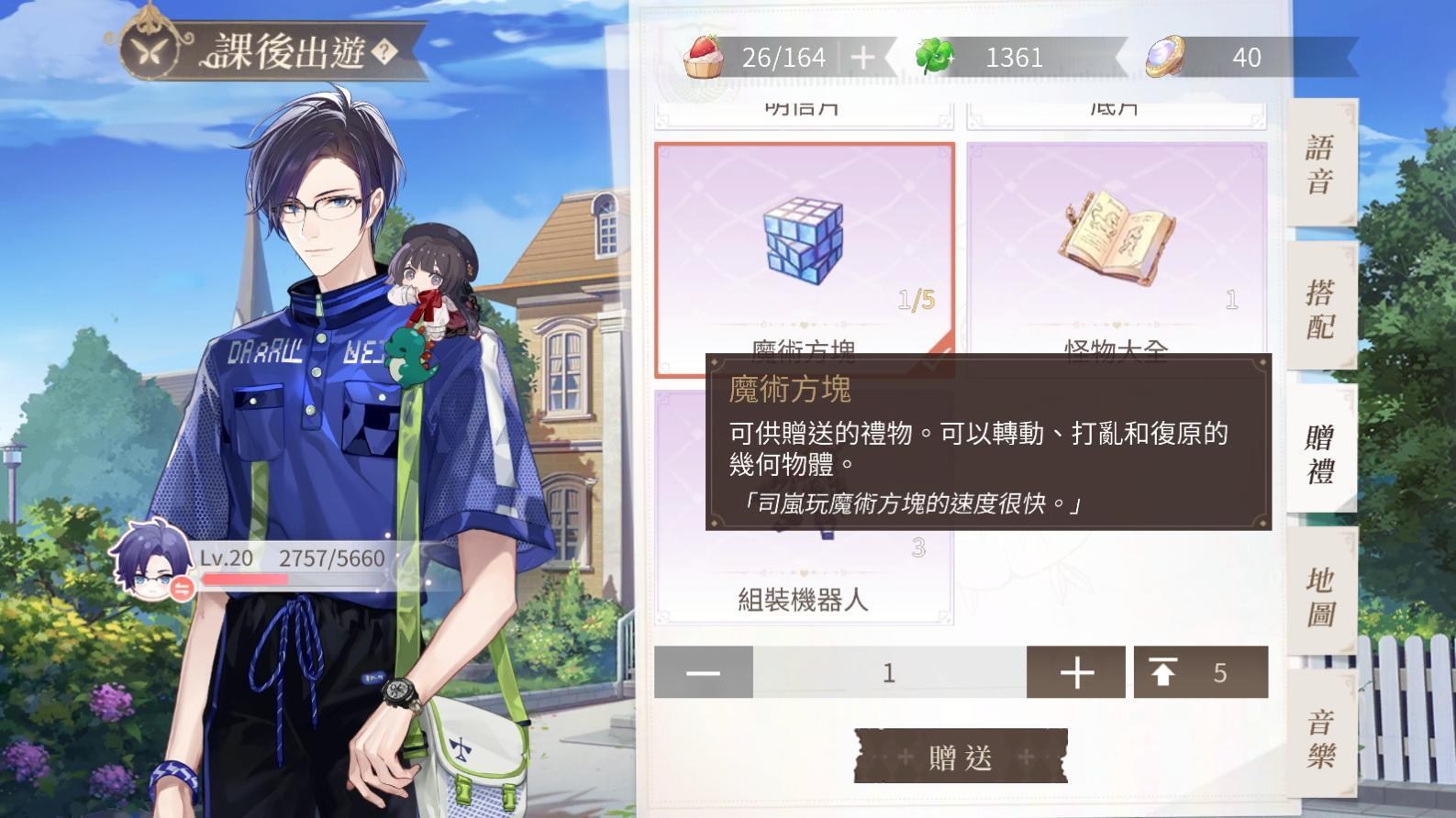 出遊>裝扮>贈禮可以送男主禮物