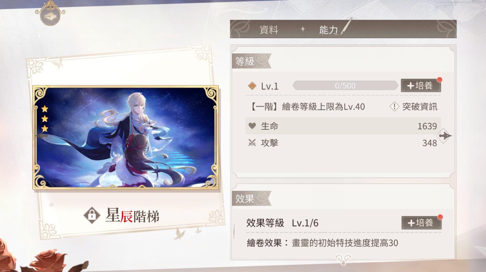 2.培養效果為初始特技進度提高的繪卷