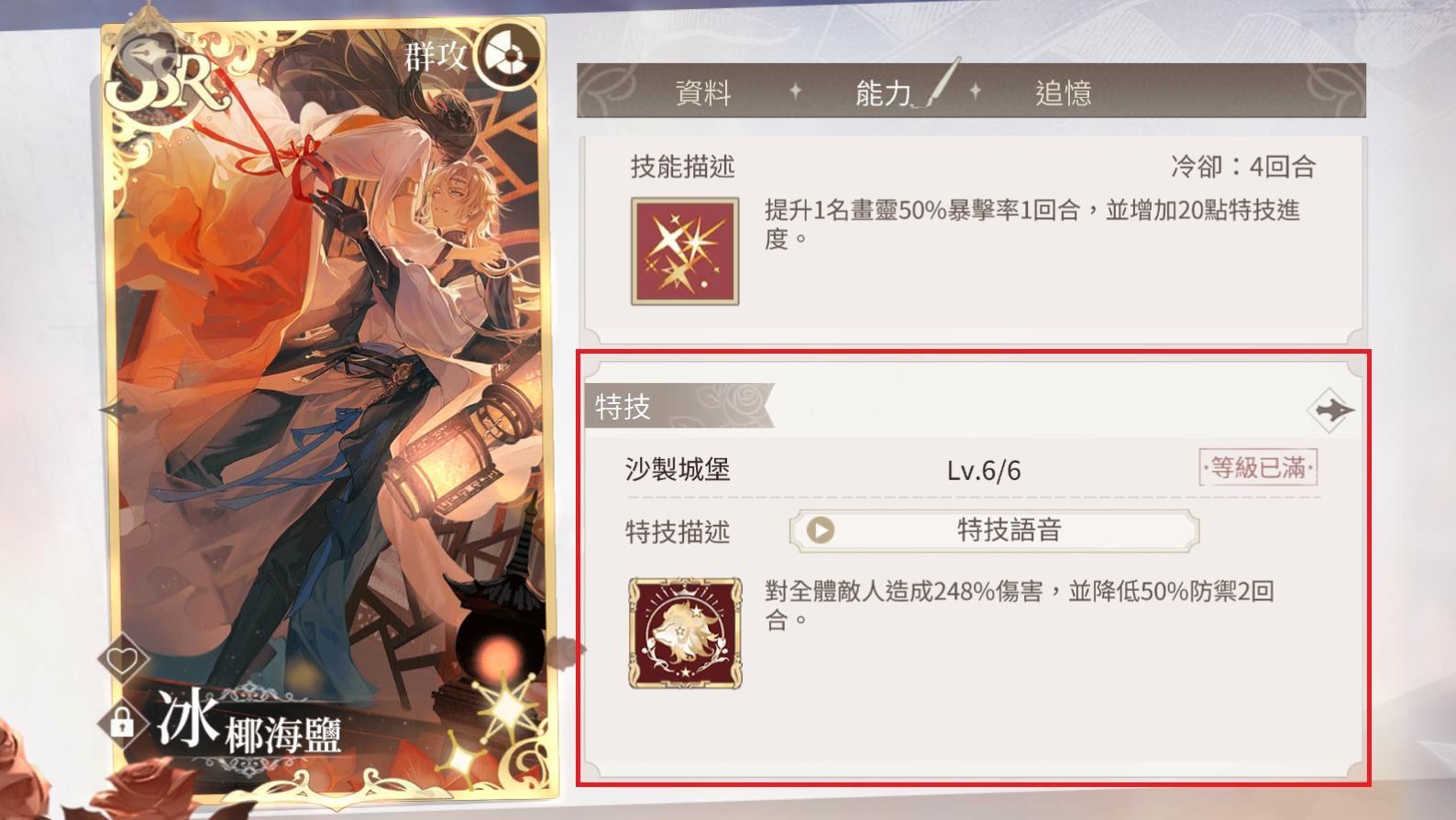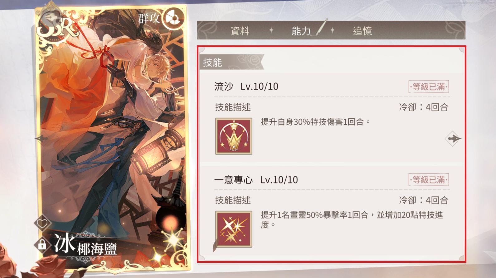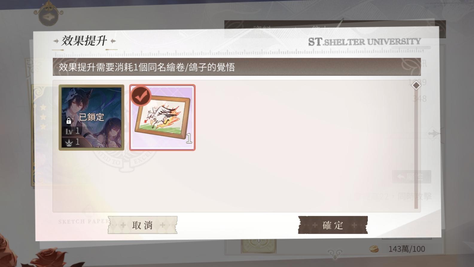 覺悟:卡牌特技的升級物品,SSR的1個特技需要20個覺悟提升