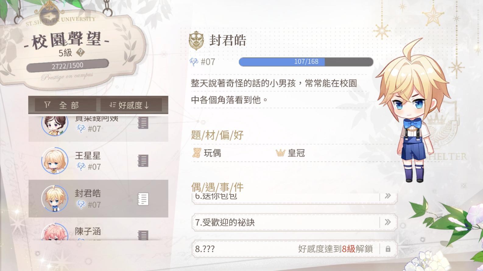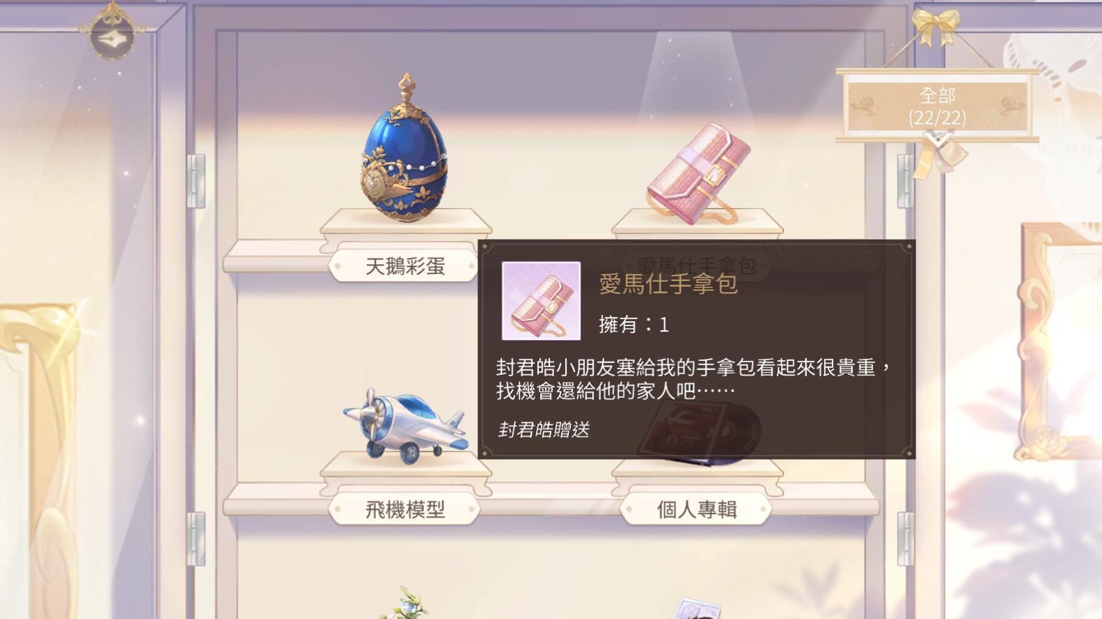 12.有一個收藏品需要封君皓的好感度才能拿到