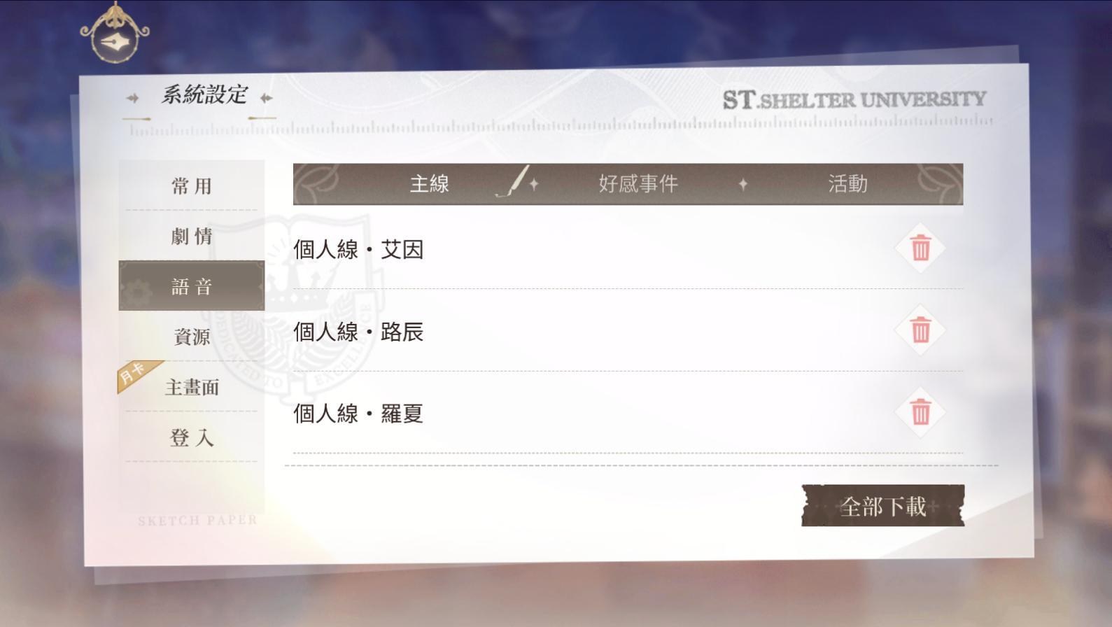 碰到語音包下載不完全,可至主畫面>左上角設定點開>語音項目刪除/下載