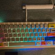 回過頭來看 B1 Pro 本身的鍵盤外觀,象牙白配色下仍是有相當不錯的質感,75% 按鍵配置相當小巧緊湊,視覺上也可見鍵盤盡可能的將周圍邊框縮減,僅在上半部添加一橫條加高,作為主要開關按鈕、系統切換、Type-C 連接埠所在位置。