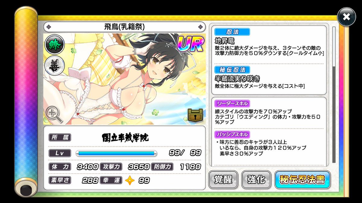 本次PU的新卡片為 UR 飛鳥(乳籍祭)以及 UR 風雅(乳籍祭)〈此為覺醒後的稀有度以及衣裝〉。