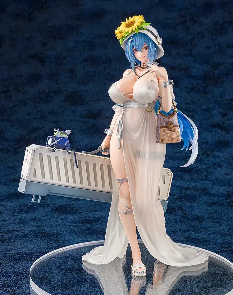 出自超人氣社群遊戲《少女前線》,「DP-12」以2022年實施的泳裝主題裝扮「熙光寓言」造型化身為比例模型登場!以主題裝扮插畫為原圖忠實地製成模型,帶有透明感的側邊開衩連衣裙也採用透明材質表現。另外,連身裙與向日葵帽可自由拆裝的樣式,能打造更涼爽的裝扮。敬請將於陽光下波浪邊搖曳的「DP-12」帶回家吧。