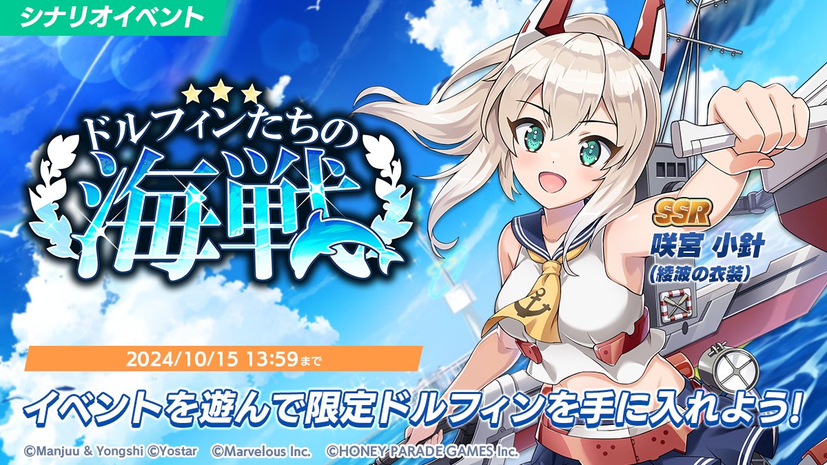海豚們的海戰 (ドルフィンたちの海戦) 」以及「挑戰賽-25th Target-」,同時開放合作Cosplay卡池。