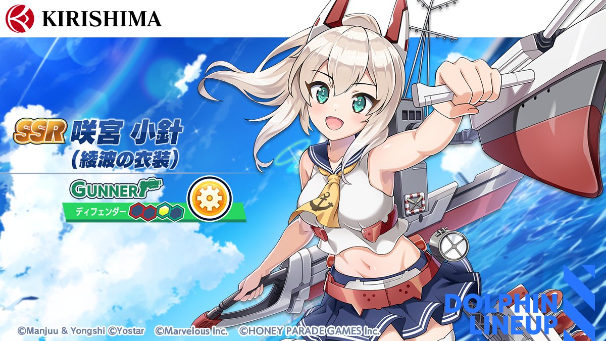 透過活動限定任務以及活動限定開箱抽卡可以獲得合作Cosplay海豚 SSR 咲宮小針(綾波的衣裝) 咲宮小針(綾波の衣装) 。