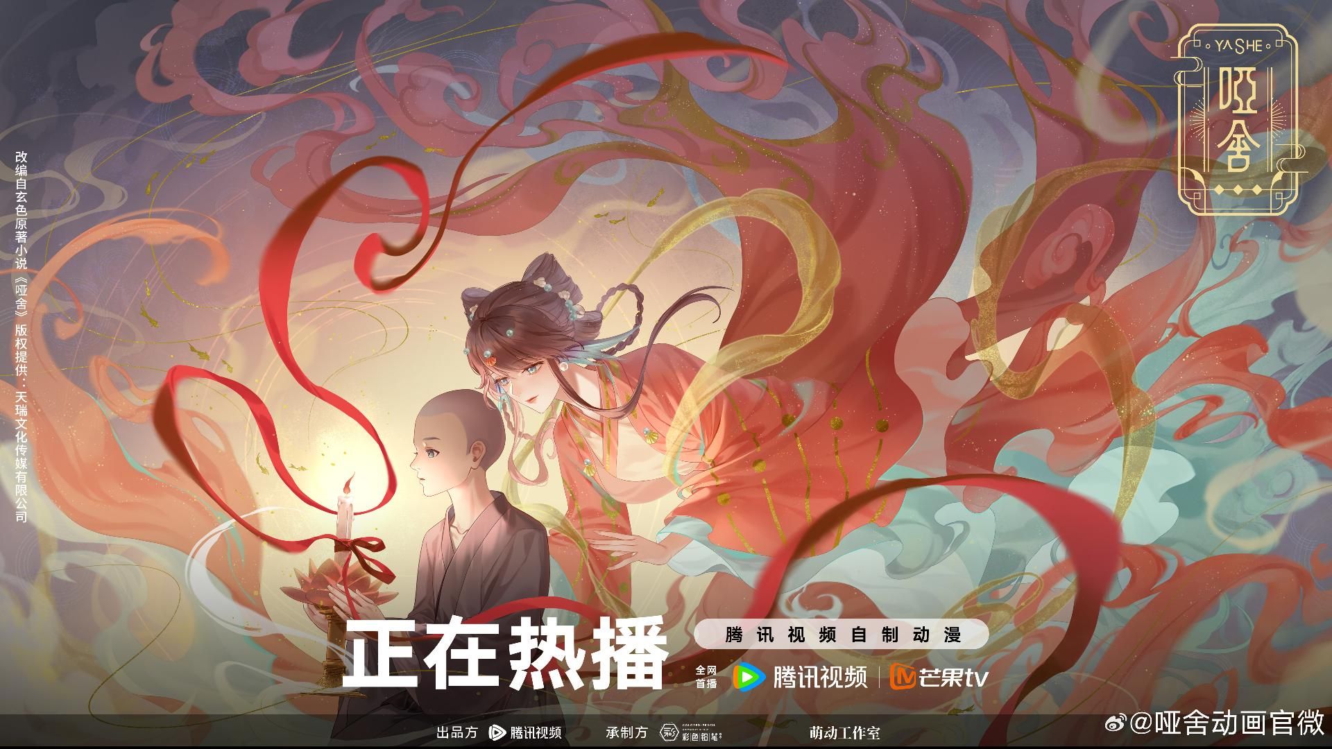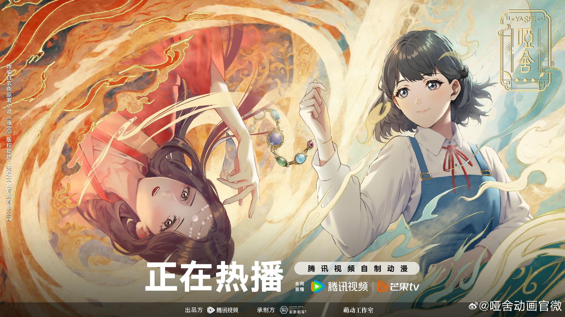 網路動畫《啞舍》改編自「玄色」老師,同名小說作品,動畫由「騰訊視頻」出品,「彩色鉛筆動畫」改編製作,10 月 4 日起每週五 10:00「騰訊視頻」、「芒果TV」雙平台播出,首更3集,預計全48集。台灣可於騰訊國際版「WeTV」收看。