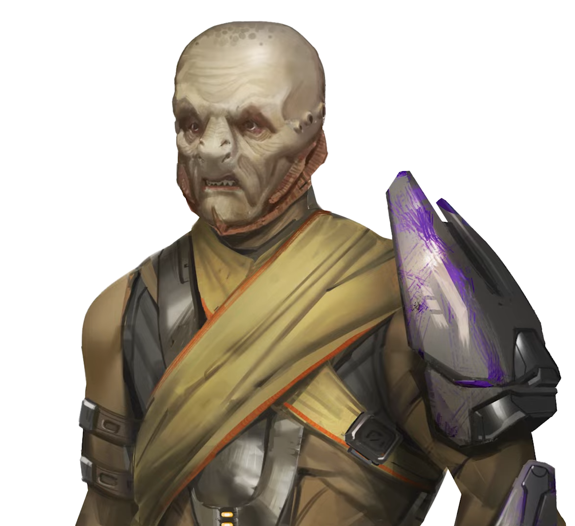 註8:這邊的外貌描述符合雍黑特(Yonhet)這個種族。雍黑特的人數較少,儘管也是星盟的一員,在軍事方面沒有太多發揮空間,反而是以貿易、走私聞名。