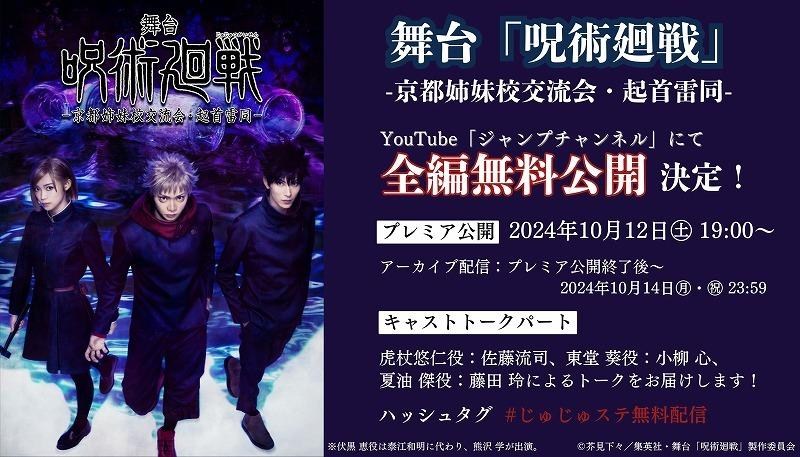 參予演出的有佐藤流司(虎杖悠仁)、泰江和明(伏黒恵)、山口乃々華(釘崎野薔薇)、高月彩良(禪院真希)、三浦涼介(五條悟)...等陣容。並找來著名的小林顯作擔任導演、知名聲優-喜安浩平負責編劇。