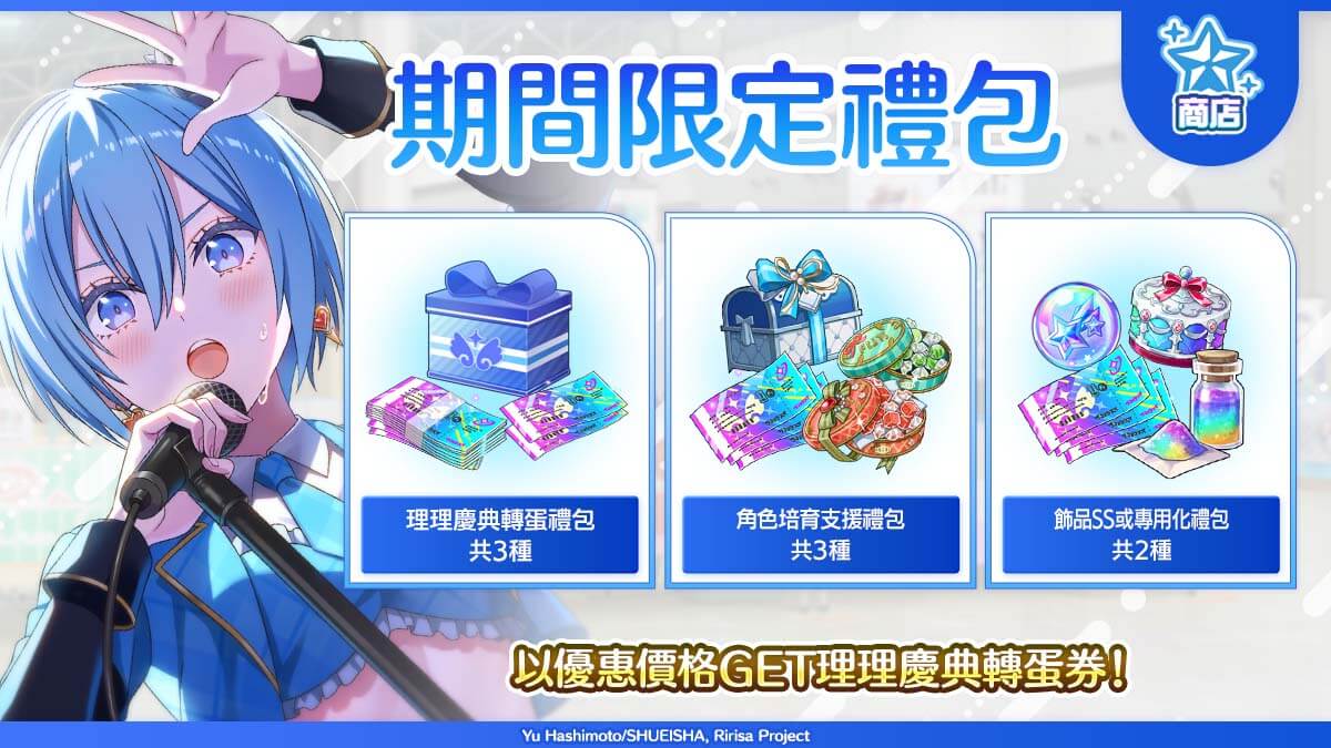 配合 理理慶典 舉行,於商店內販售總計 8 種類期間限定禮包供玩家購買。