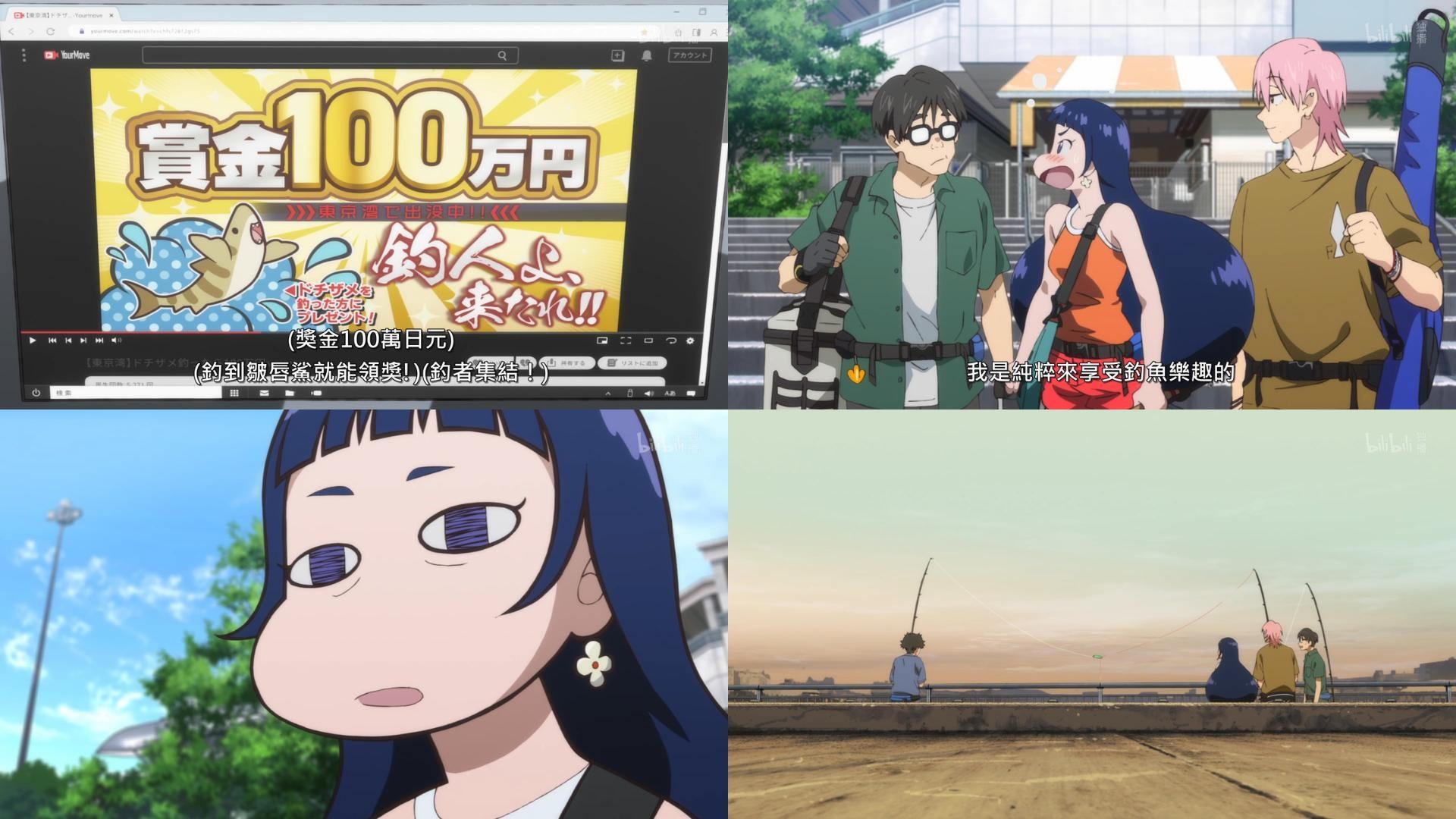 有趣的是男2粉毛形容男主是貓太對了,打工人的日常就是翹班超好笑,剛好這集主線插進來,釣到皺唇鯊100萬,彷彿是救贖的絲線,好巧不巧釣起了男主與男2,樂