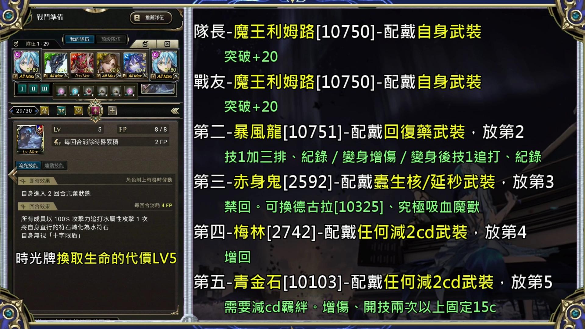 第3回依序開龍媽技1、隊長技1戳左上、青金石,原版面消除無視五屬擊。