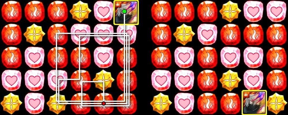第2回依序開妻子、士遠[左下],火珠起手原版面首消≧5組屬無視十字。
