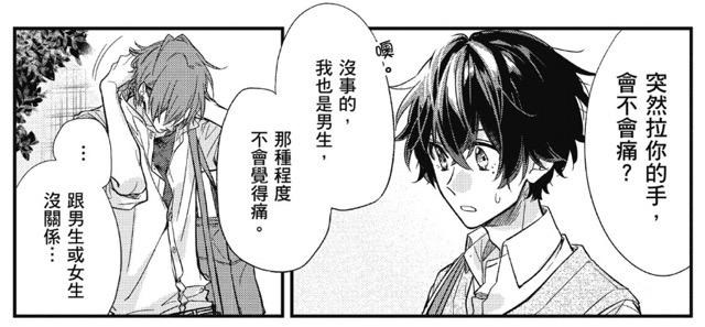 因此本作與其說是 BL,更像是少女漫畫(笑),很微妙的觀看體驗,讀者用 BL 濾鏡看故事,而主人公卻拒絕這樣的發展,選擇更加成熟穩重的方式來釐清情感。故事場景選擇男校也覺得相當聰明,不僅確保完整描寫少年之間的情誼,滿足廣大女性市場需求,也不影響表現多元性向與價值觀。