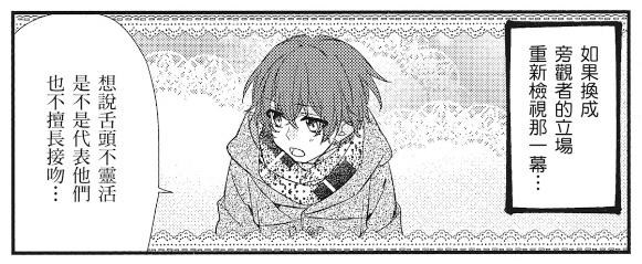 本作中後期偶會出現無名女學生被兩人的互動戳到,很喜歡作者以這個方式來將讀者帶進《佐佐宮》的世界,我覺得甚至向讀者傳達了與其將自己套入攻或受,不如就坦蕩蕩的當愛幻想的腐女吧!這點讓我倍感窩心,腐女的幻想被好好地接納了。