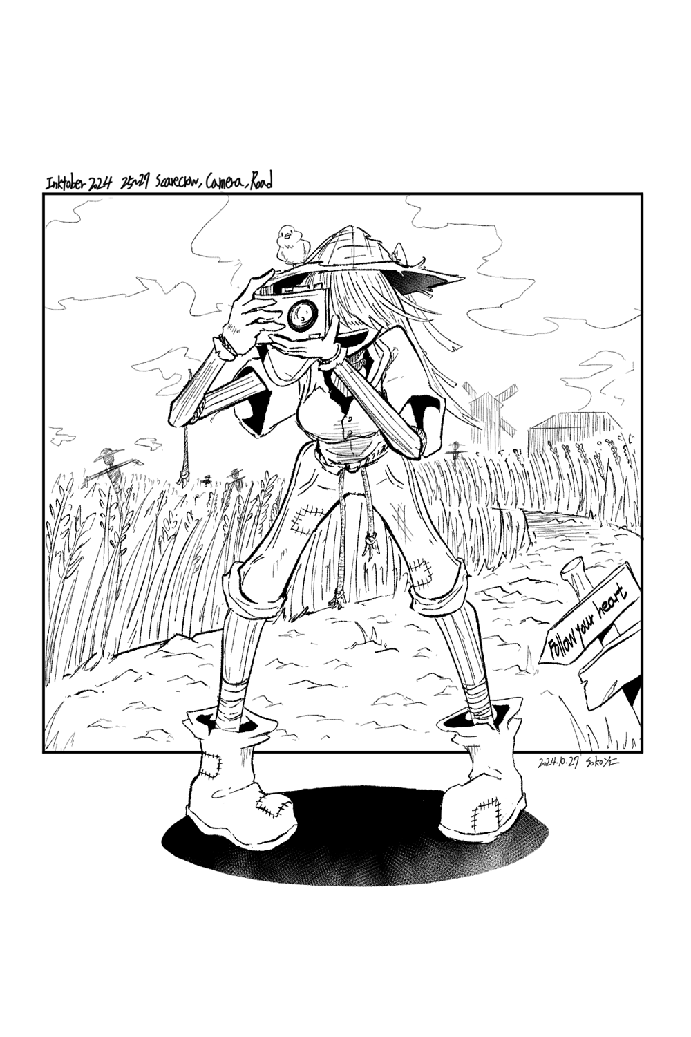Inktober Day 25~27 Scarecrow, Camera,Road
