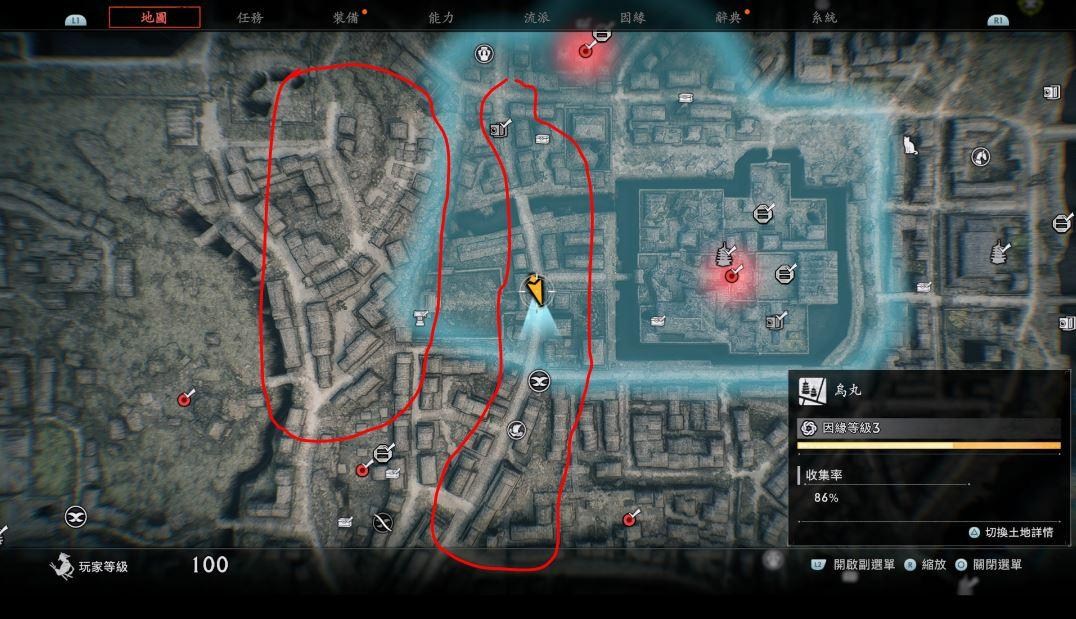 地圖選京都,然後在下圖紅圈處瘋狂殺人