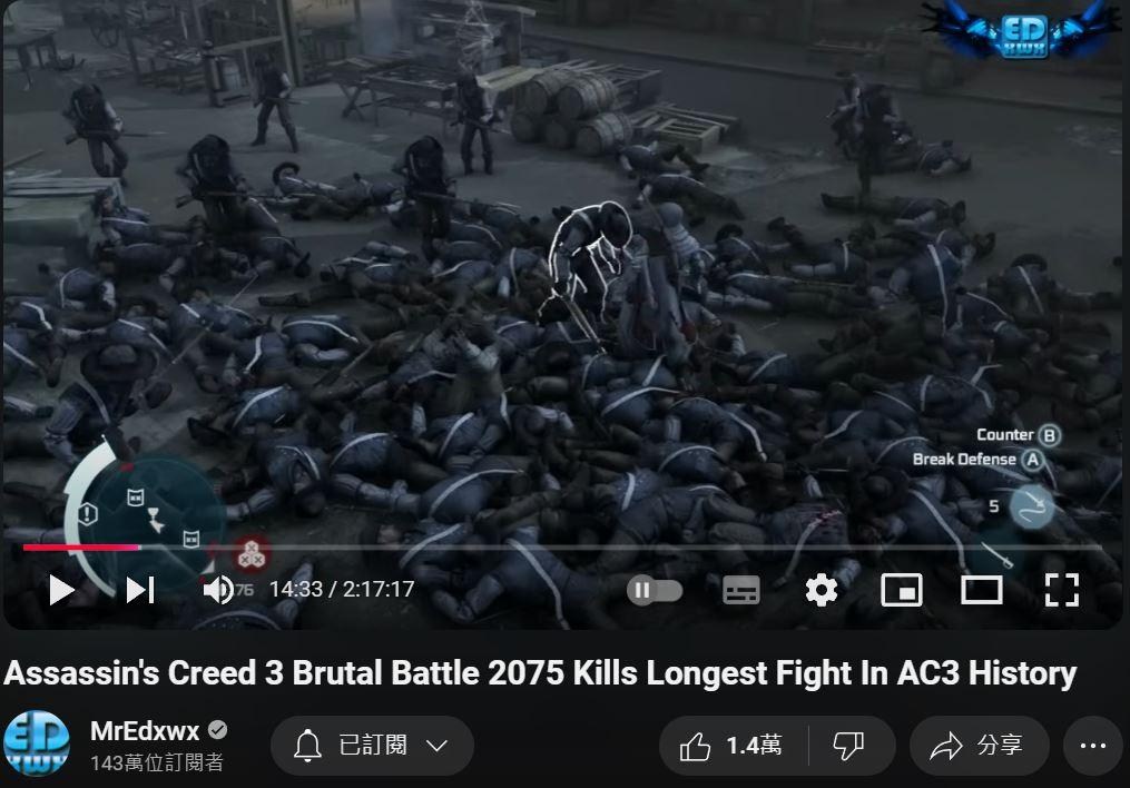 我以前玩刺客教條閒來無事就會在城鎮開無雙,特別是三代有一個地方可以一直刷小兵
