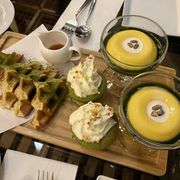 (ほろ苦のかためプリン + 渋皮栗のアイス マロングラッセ添え)