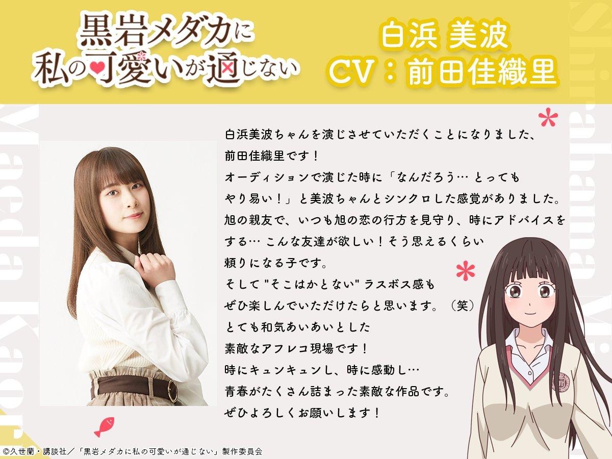 由 久世蘭 所著,並改編成電視動畫的漫畫作品《黑岩目高不把我的可愛放在眼裡》,官方在今(7)日釋出了主視覺圖與動畫「白濱美波」角色視覺圖與宣傳影片,預計2025年1月播放。