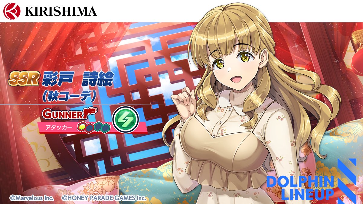 透過活動限定商店可以獲得海豚 SSR 彩戶詩繪(秋季服裝) 彩戸詩絵(秋コーデ) 。
