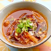 名字乍聽有點可怕的「血腸湯」也是韓國著名的庶民料理,據說源自於過往與朝鮮互動密切的古中國,連豬血都不放過,想必這道料理的背景故事跟"惜食"有關。原本以為會是塞有糯米,像是包了腸衣的豬血糕,上桌後才發現這裡用的是冬粉,查資料發現是1970年代大韓民國鼓勵養豬之後才有的變革。