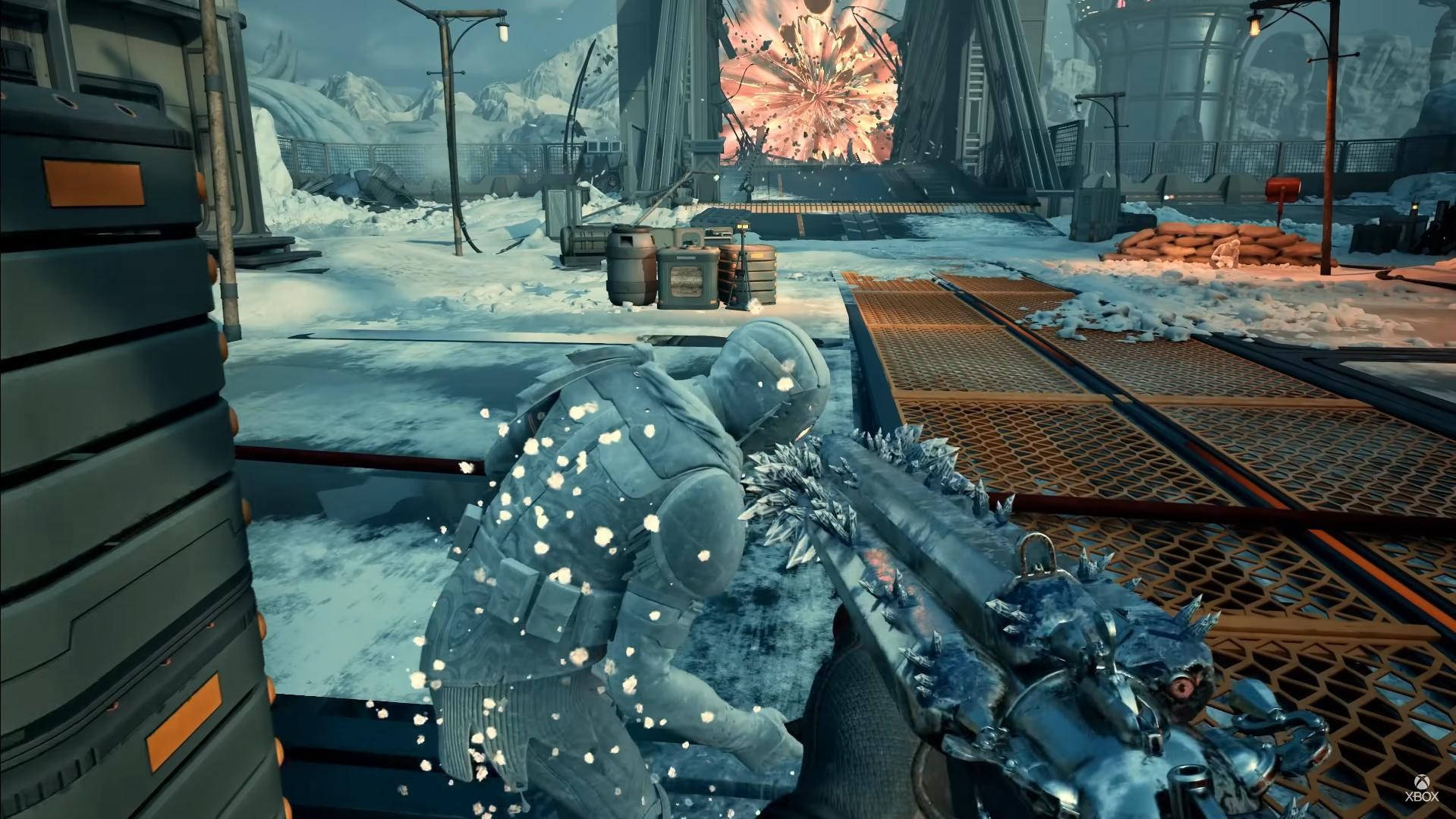 這次介紹了不同的遊戲模式,包括 PvPvE 的模式、巨大 Boss 戰和最簡單的 3v3 或 6V6 的 PVP 模式。戰場上也有給玩家使用的武器平臺,搖身一變變成 GP03D,2025 年的春季就可以玩到。