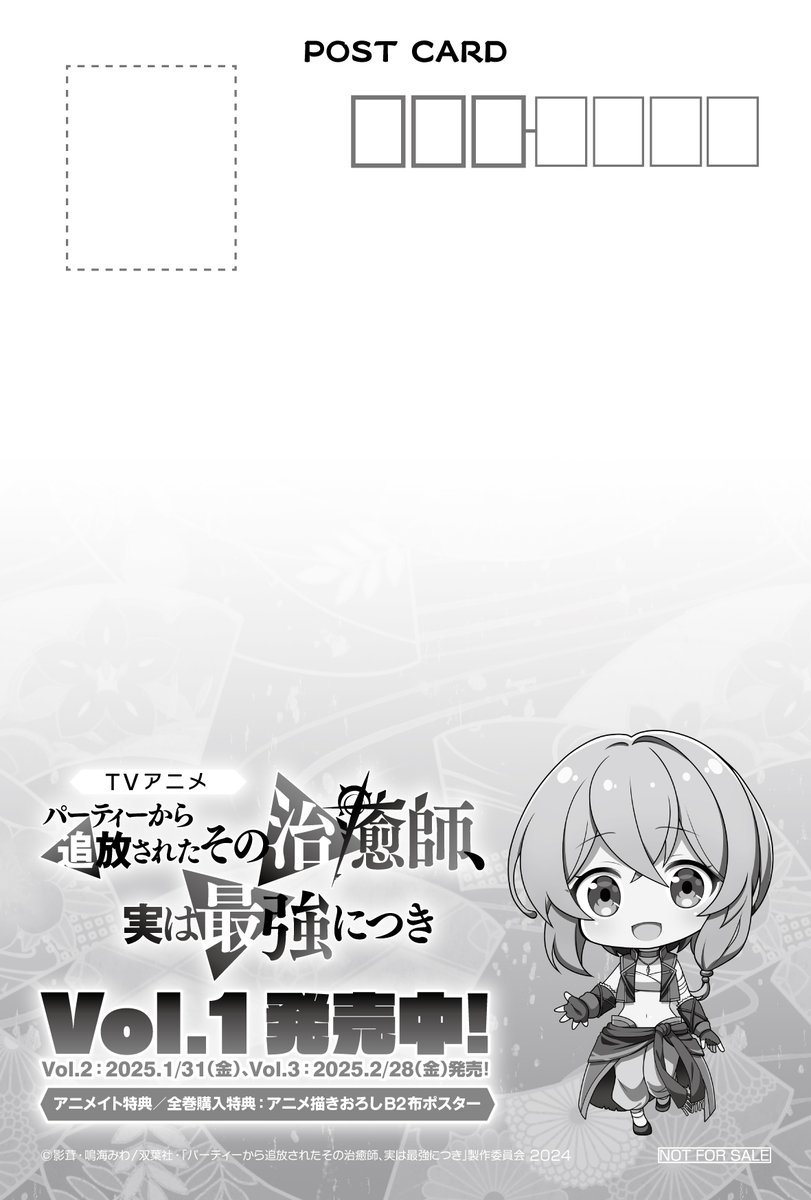 即將在 1 月 1 日迎來 2025 新的一年,宣布於日本全國安利美特實施動畫《被逐出隊伍的治癒師,其實是最強的》賀年卡發放活動,使用穿著正月和服 納瑠賽娜 的特別插圖。