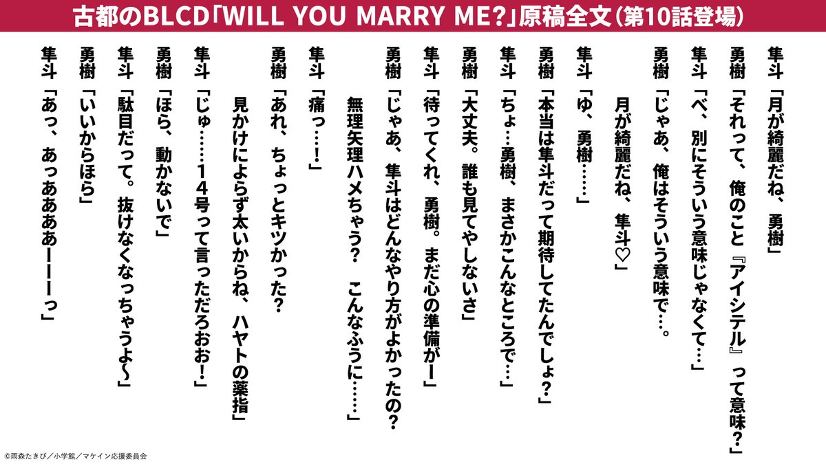 此外,第五卷中也將收錄使用於劇中所登場的古都的 BL 廣播劇 CD「WILL YOU MARRY ME?」的封面插圖的插圖卡片外,官方也特別公開其原稿全文。同時,也可下載本篇小鞠與古都所聽的廣播劇的音源,QR 碼與序號將會附贈在第五卷中。