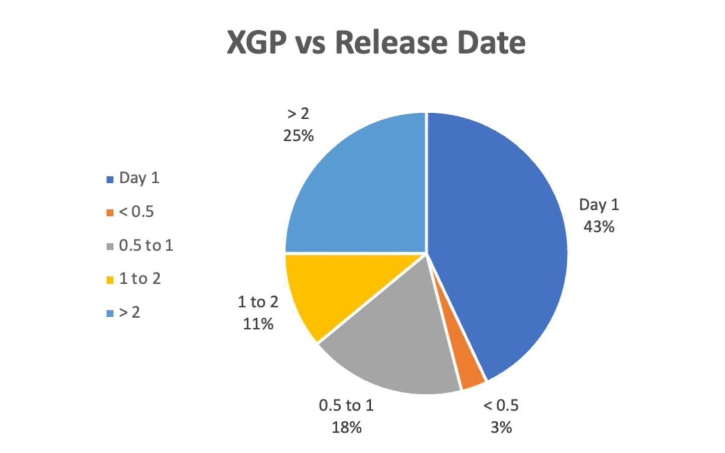 而橫跨所有類別,首日登陸Game Pass Ultimate的遊戲總共有35款,佔了全部遊戲的26%。