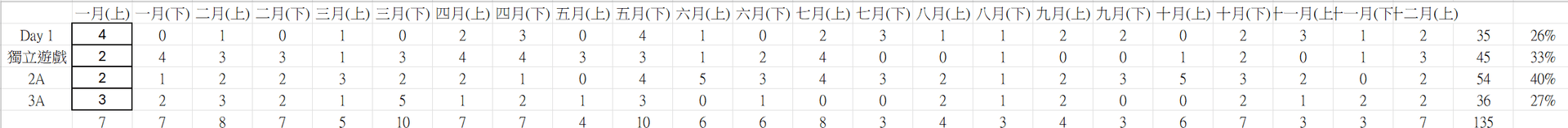 不過在整體新遊戲方面,我們可以看見2022年總共多了185款的新遊戲,即2024年總共下跌了27%。特別是2024年上半年平均加入7款遊戲,到下半年平均只加入4款新遊戲。