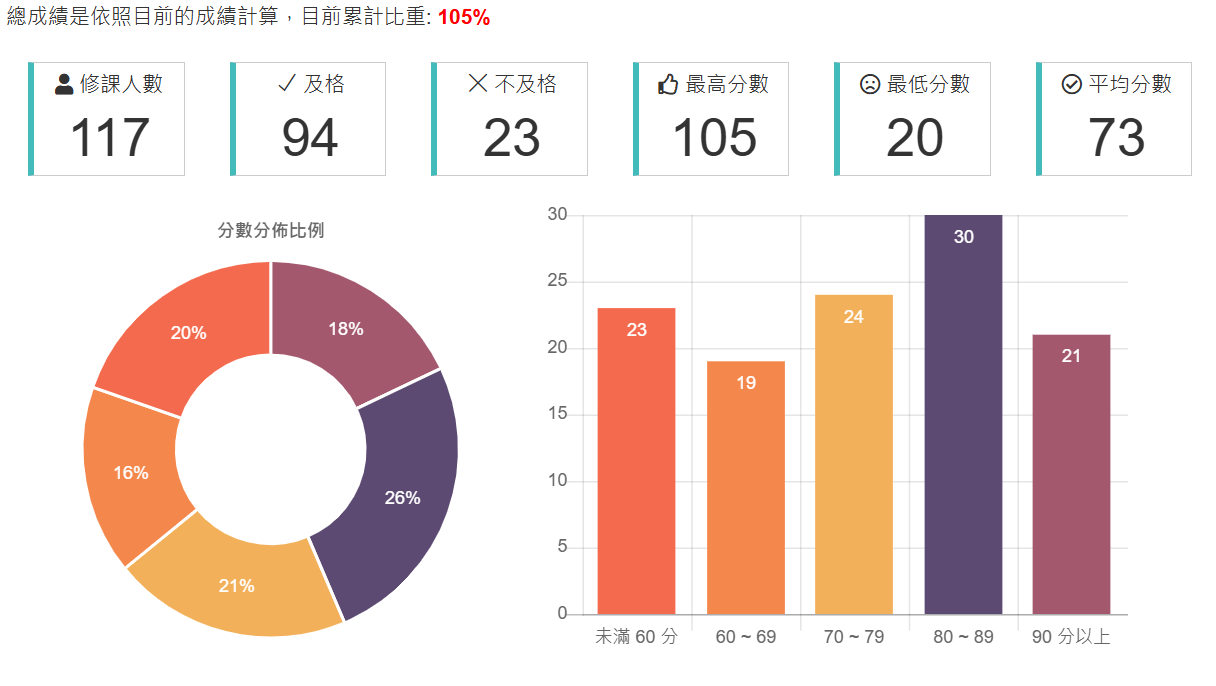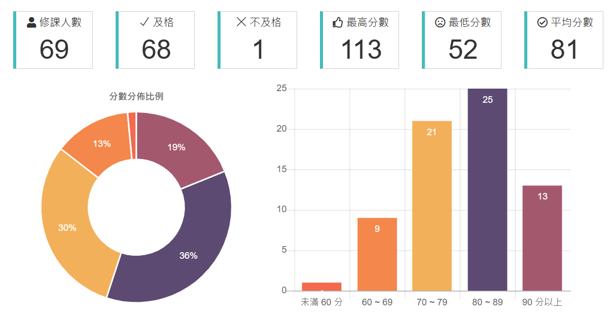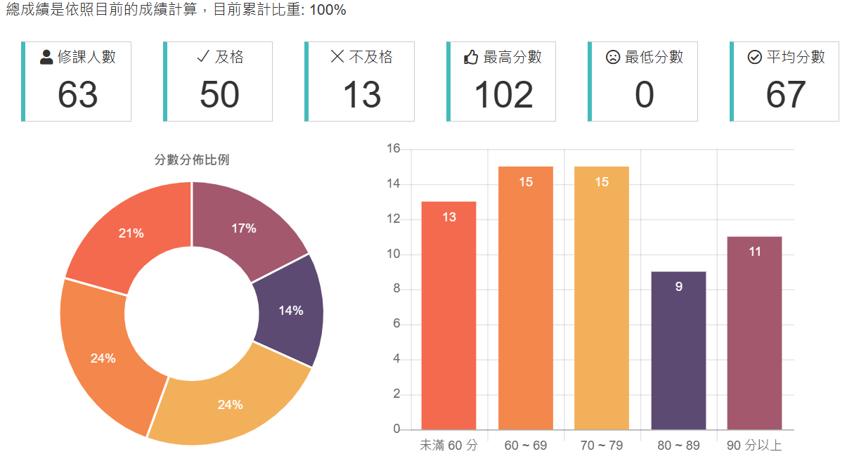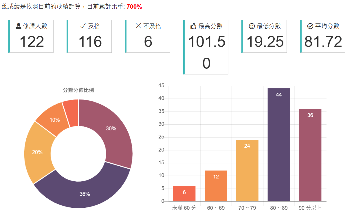 期中期末都蠻有難度,平均落在三四十,我兩次都考跟平均差不多,我隊友則是兩次都滿分...(學期113分)。