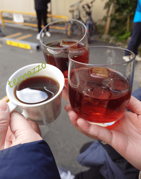 完全沒有空的座位,只好買外帶杯坐在新風館的庭院喝咖啡