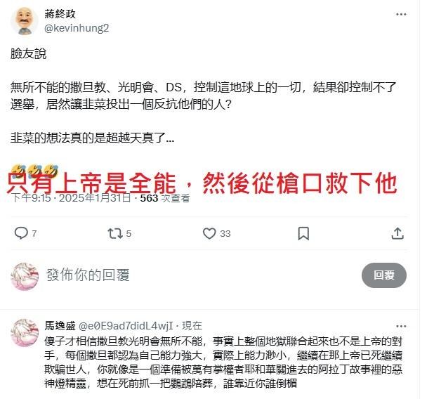 2.如果川普被選上不是神的選擇跟安排,那是否表示你否定神的永恆與全能?你否認一切都在神的掌控跟計劃內?你是否認為世界將永遠被惡者主宰?