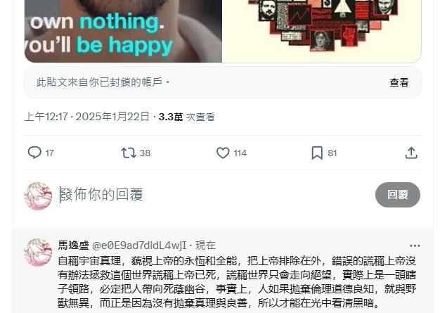 推特帳號baxinsuoshang(宇宙智慧),以及推特帳號kevibhung2(蔣終政)