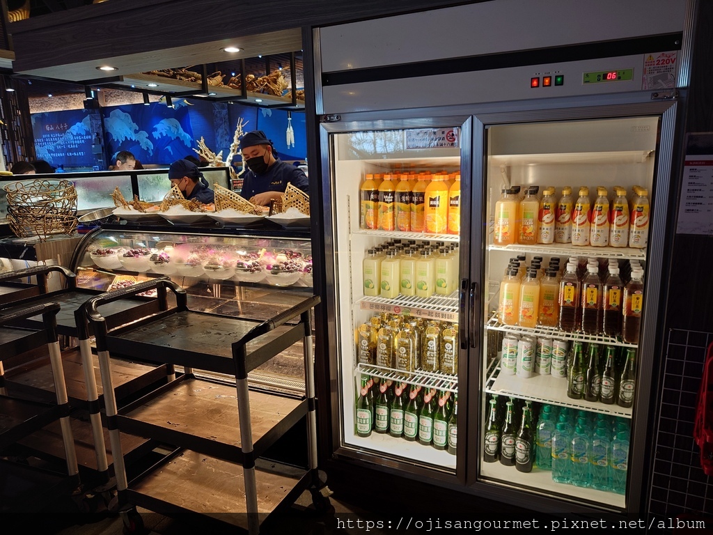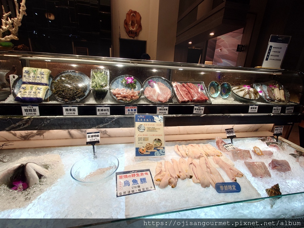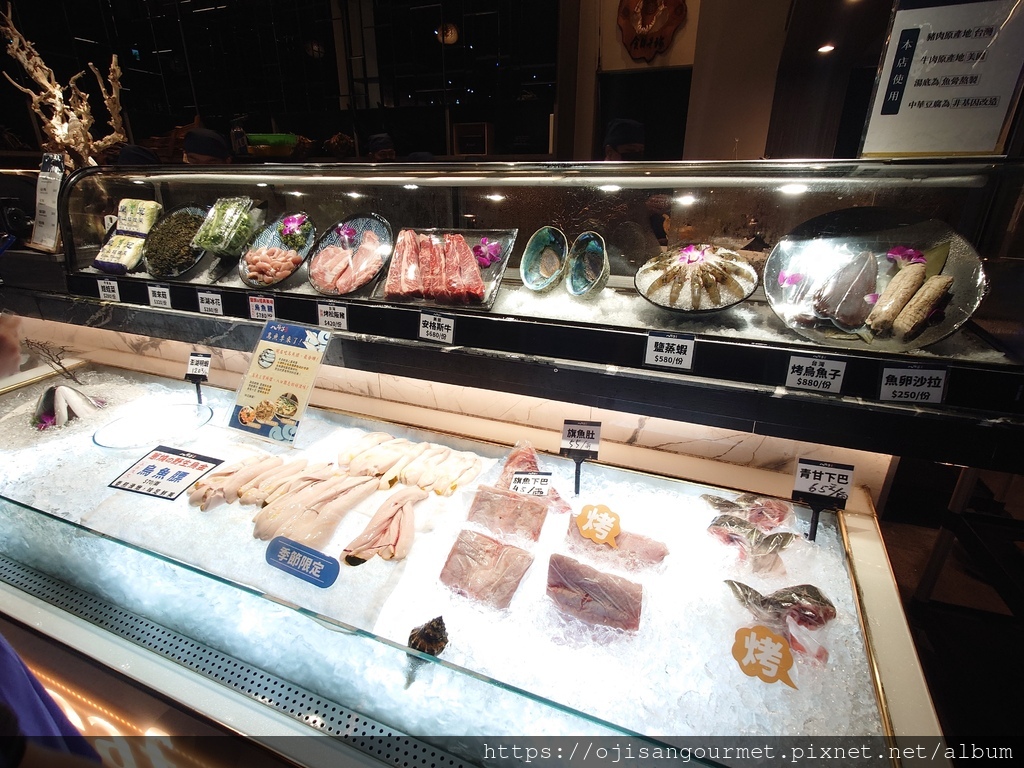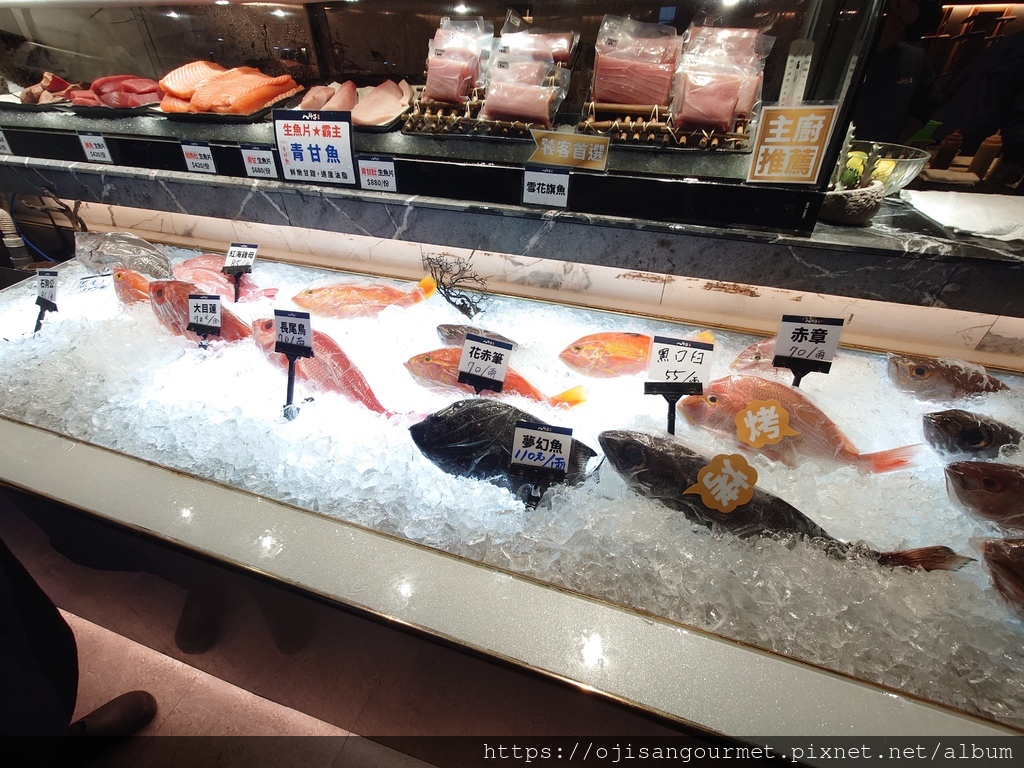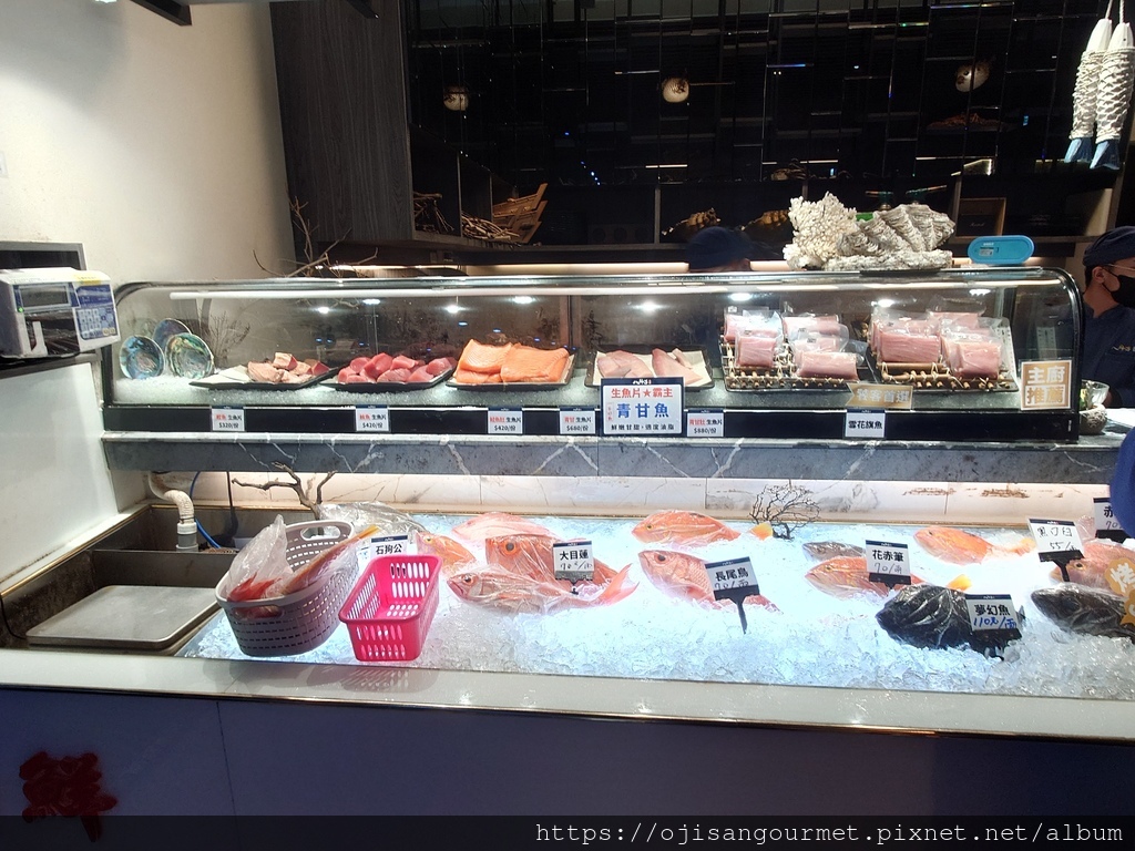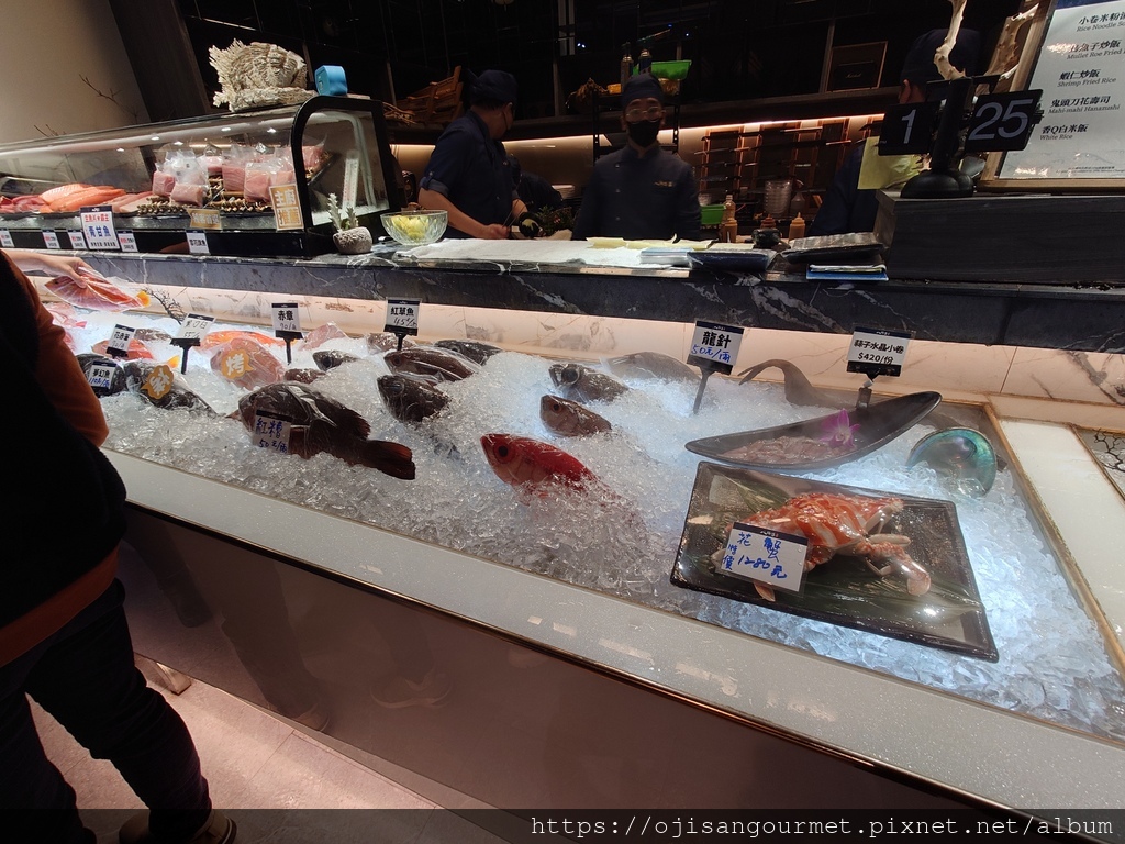 除了觀賞魚,【八斗子】也有媲美濱江市場水產暢貨中心的活體海鮮區,數十個大玻璃水族箱畜養著鱈場蟹(還不只一箱)、象拔蚌、澳洲龍蝦、日本生蠔、鱘龍魚、比目魚和鳳螺等等,琳瑯滿目,有如海鮮的大閱兵。
